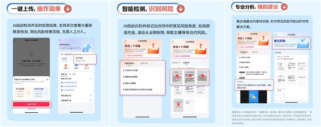 此次“合约风险AI检测”功能上线后,主播可主动上传与直播机构间合约、自行检测,提高了合约检查覆盖率,有助于进一步维护主播权益。