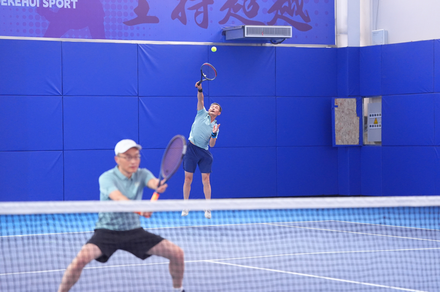 刘妮妮的网球情缘,始于小区里那片简陋的室外网球场。“20多年前,网球开始在上海逐渐起步,室内场地少之又少。如今在上海,网球场越建越多,尤其是得客会,让我们这些老球友有了‘根据地’。”自从体育中心开张,刘妮妮每周必来两三次,“冬天暖和、夏天凉爽,还有新风系统,打球环境别提多舒心了。”今年以来,得客会举办的四五场老年网球赛事,她一场不落全勤参与,还在这里结识了不少志同道合的球友。